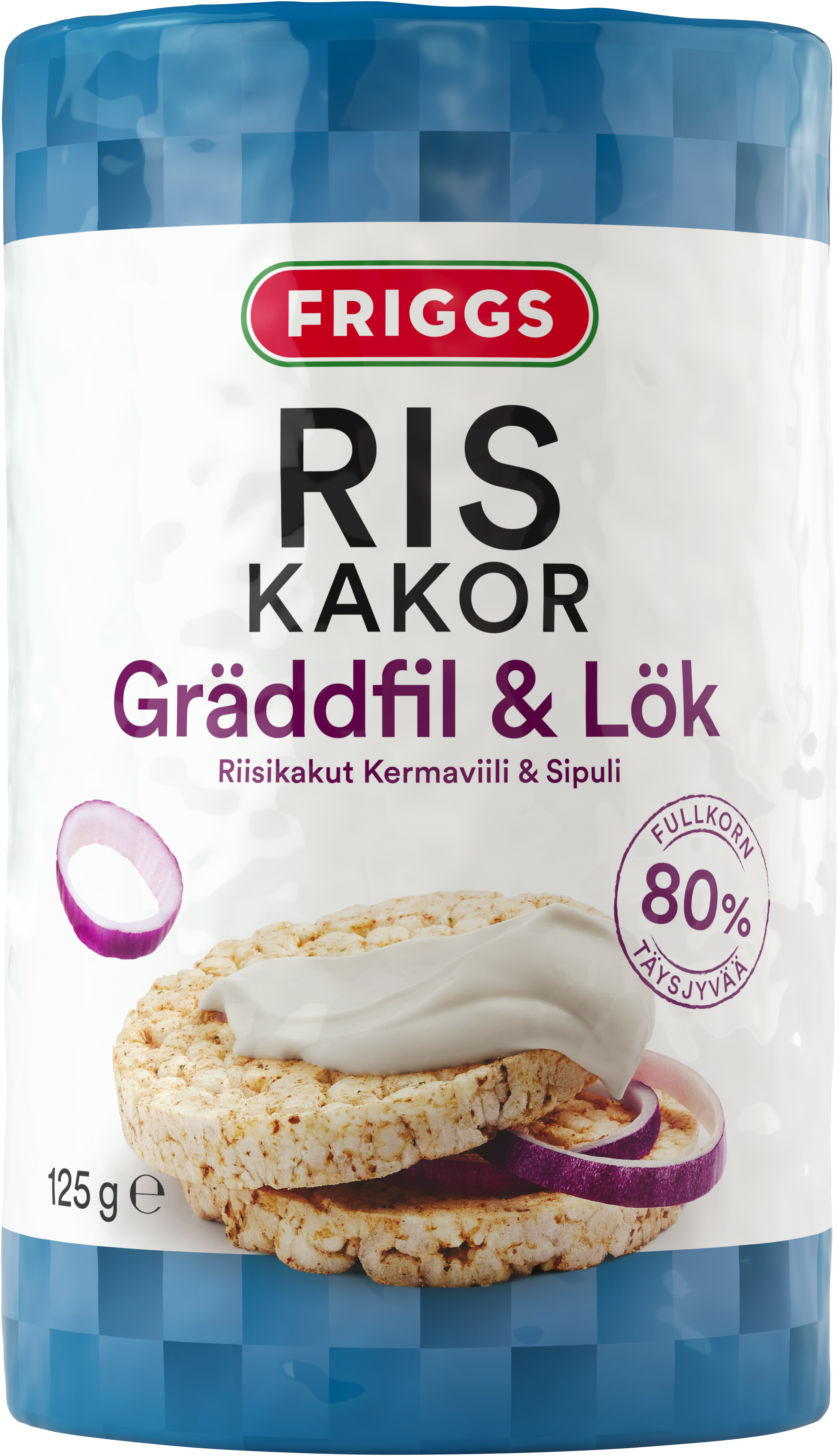 Friggs Riisikakut Kermaviili ja Sipuli vievät kielen mennessään! Täysjyväpitoiset riisikakut sopivat loistavasti välipalaksi sellaisenaan tai suosikki suosikkitäytteilläsi päällystettyinä.
