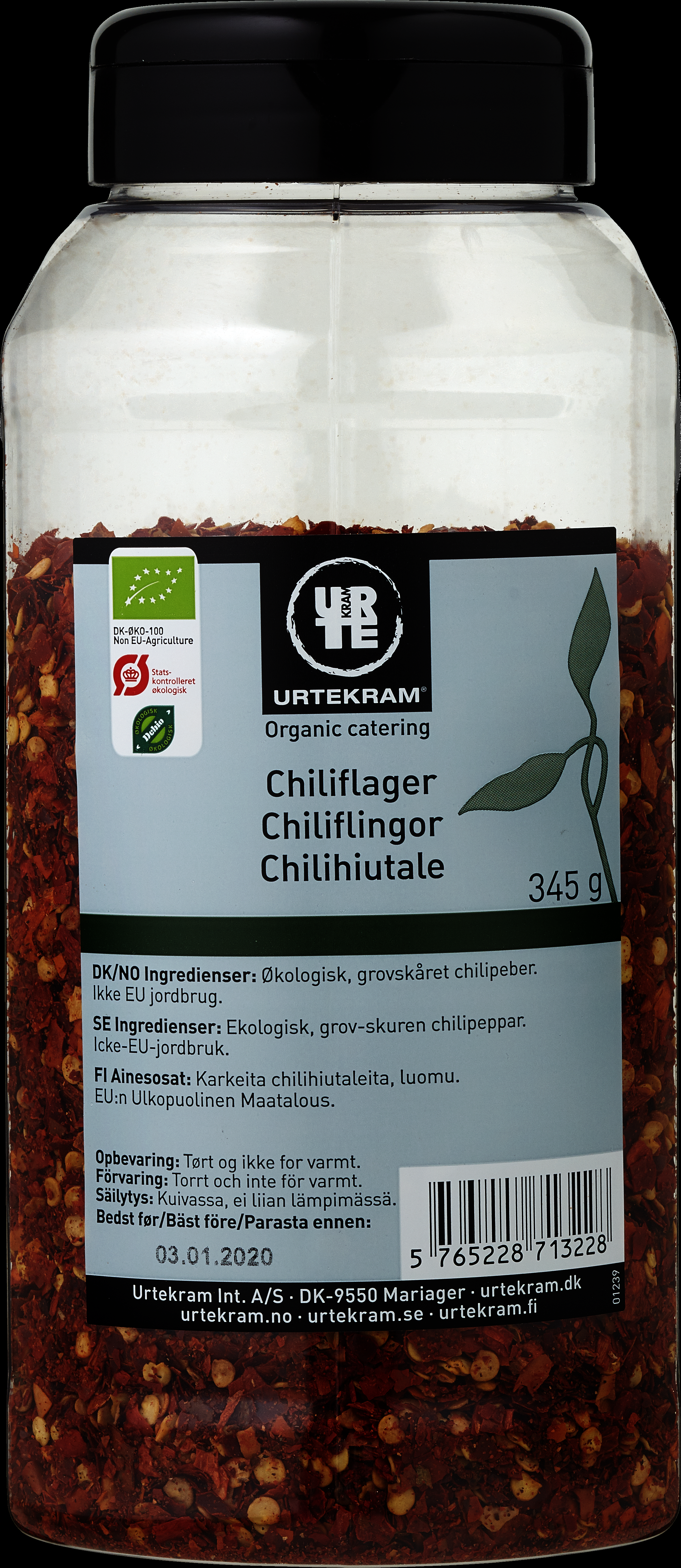 Punaisesta chilistä rouhittuja hiutaleita. Vahvuus: mieto-medium.