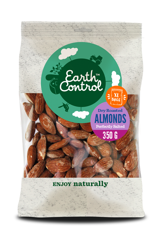 Earth Control paahdetut ja suolatut mantelit ovat mainio välipala. Olemme antaneet manteleille suolakylvyn ennen niiden paahtamista, joten irtosuola ei sotke sormia ja voit syödä niitä vaikka autossa. Kuivapaahtaminen on tehty matalalla lämmöllä, ilman lisättyä öljyä.